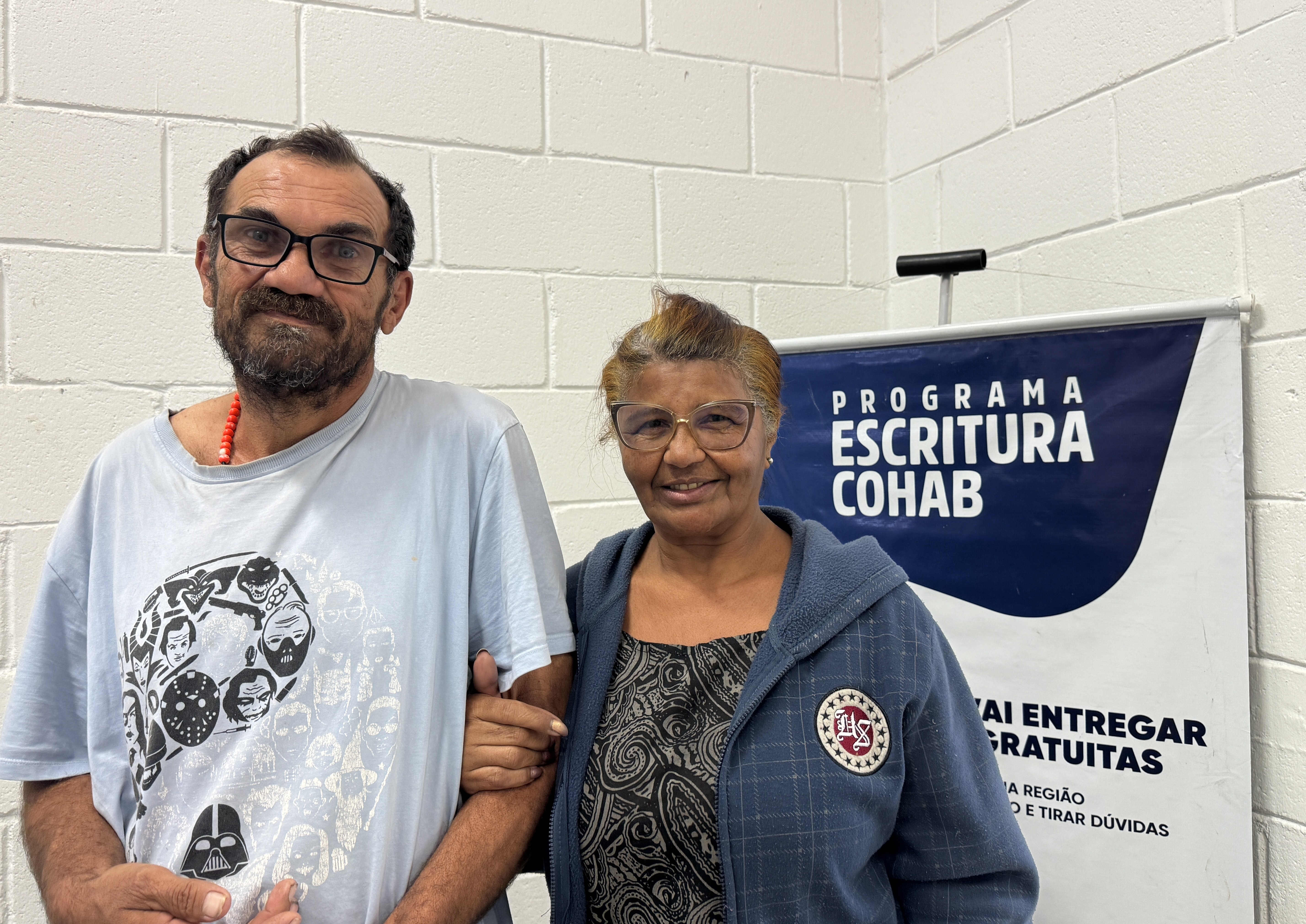 “Nós viemos na Subprefeitura da Cidade Tiradentes para realizar um sonho, que era ter a escritura do nosso imóvel. Não tínhamos condições de fazer isso [escritura]”, relata o beneficiado Miguel Viana, de 58 anos, instrutor de auto escola, acompanhado de sua esposa Hilda Viana. Ele lembra das dificuldades que enfrentou até chegar nesse momento. “Nós estávamos precisando há muito tempo regularizar o nosso imóvel”.
