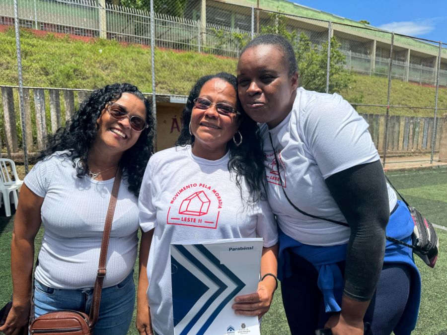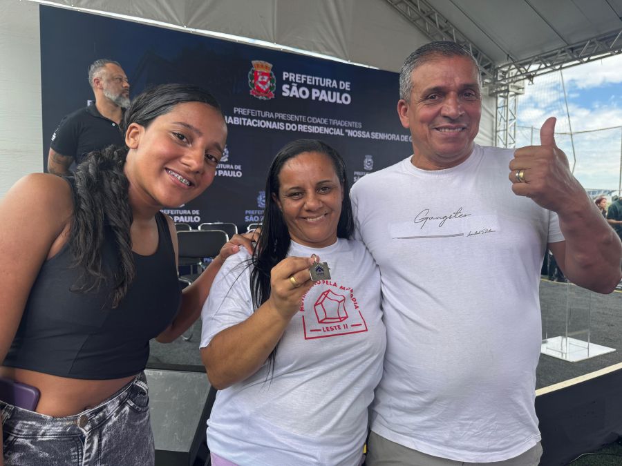 Entre os contemplados, Melissa Kelly Salviane Paixão, de 39 anos, recebeu as chaves das mãos do prefeito Ricardo Nunes. Mãe de duas filhas e avó de uma neta, Melissa deixa para trás a precária moradia na comunidade Jagatá, no Itaim Paulista, sem saneamento básico e energia elétrica.