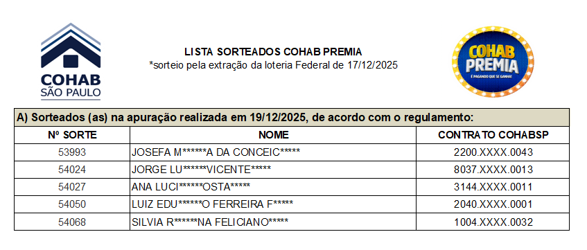 Número Sorteio Resultado Regulamento